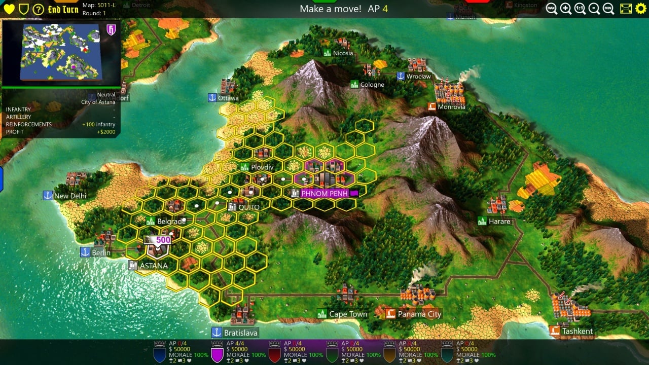Этот инди-проект предлагает гибкость в очередности ходов. Можно действовать одновременно с соперниками или ждать своей очереди. В Hex Empire 3 события разворачиваются на глобальной карте. Обычно сражаются шесть фракций. Возможны альянсы и мирные соглашения.