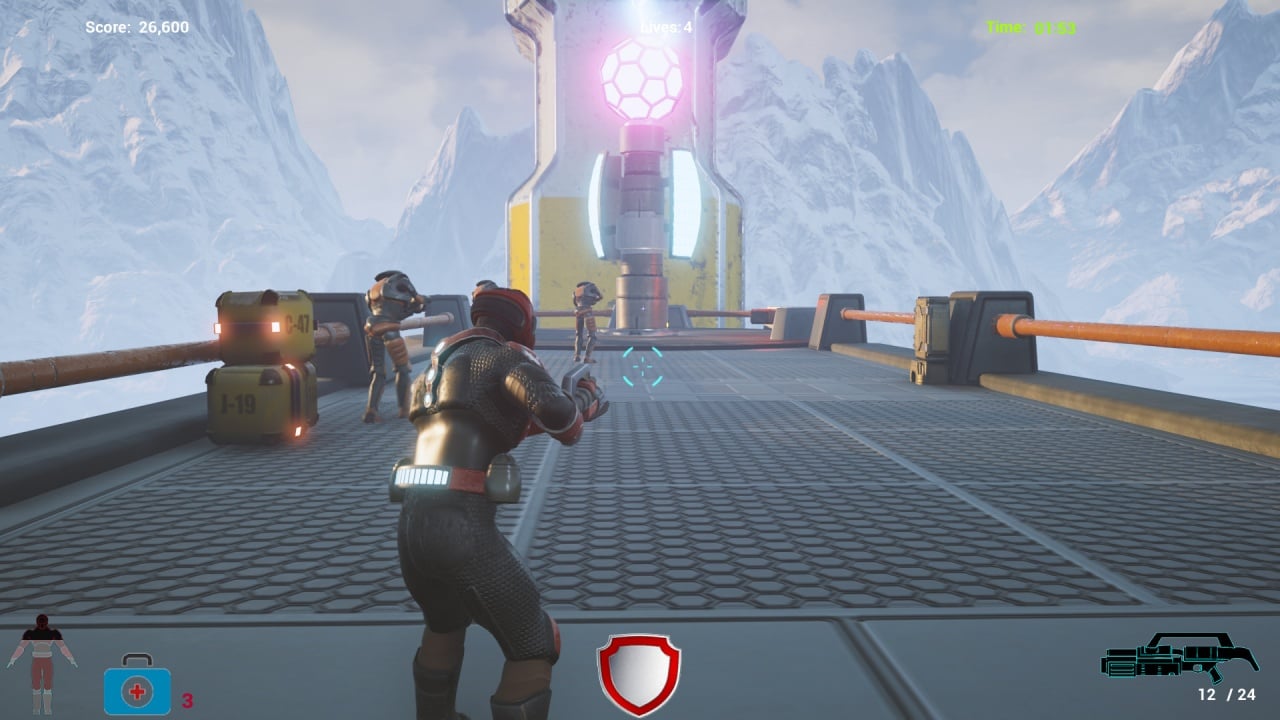 Геймплей предлагает широкое разнообразие вооружения — от стандартных автоматов до футуристических лазерных пушек. Оружие подлежит улучшению. Герой облачен в защитный костюм с уникальными свойствами. В процессе игры экзоскелет можно модифицировать или заменять. Каждая из трех миссий ставит перед вами новые задачи и бросает вызов с повышенной сложностью. Проект черпает вдохновение из классических TPS, постоянно вводя новые механики и врагов.
