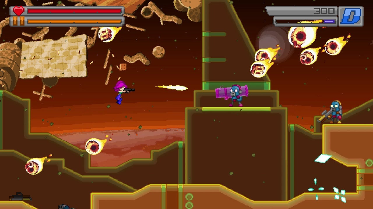 Bleed 2 – хардкорный приключенческий платформер, где главную роль занимает Рин. Эта девушка с фиолетовой причёской обладает удивительными боевыми навыками, которые помогут ей справиться с множеством врагов на пути к финальному противостоянию со злодеем. В рамках кампании, разделённой на 7 уровней, пользователю предстоит одолеть 25 уникальных боссов, каждый из которых отличается своими способностями и внешним видом.
