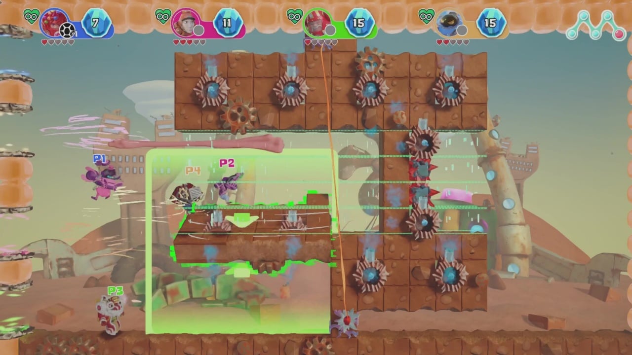 В этом тайтле есть несколько режимов: от мирного командного решения загадок до напряжённых баталий между пользователями. Одновременно могут участвовать до 4 пользователей. Для комфортной игры разработчики предусмотрели возможность подключения внешних контроллеров. Для одиночек доступен режим "история", предлагающий 300 уровней в 30 уникальных мирах.