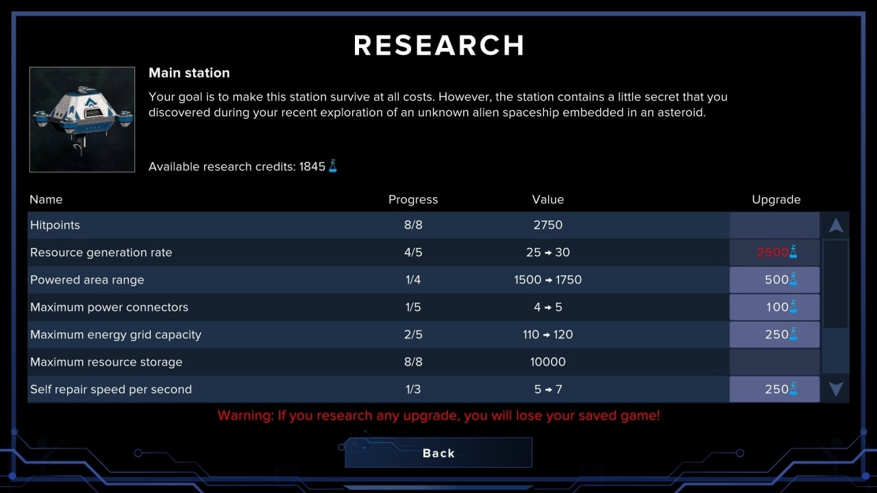 Стройте разнообразные башни, устанавливайте энергетические сетки и другие защитные сооружения. Если станция будет уничтожена, игра не начнется заново. Находясь в аномалии, вы будете откатываться во времени, теряя часть ресурсов. С каждой волной враги будут получать новые виды шаттлов, что потребует изменения тактики и адаптации вооружения. Динамика игры заставит вас оставаться в напряжении до самого конца.
