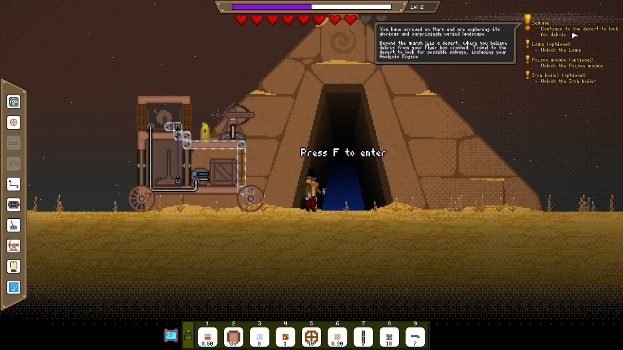 Mechanic Miner — двухмерный майнер, в котором вам предстоит строить футуристические машины и собирать ценные ресурсы, исследуя обширные территории и разнообразные ландшафты. Улучшайте свои конструкции, модифицируйте транспорт и вступайте в бой с агрессивной фауной.