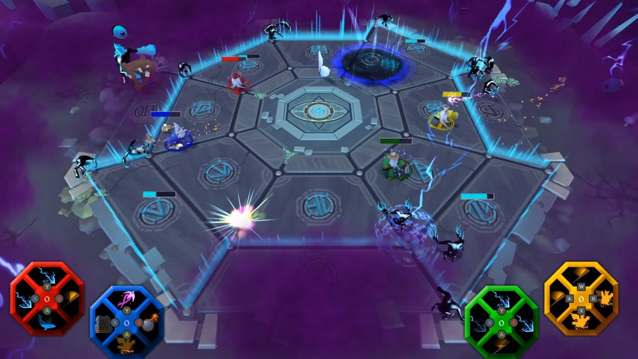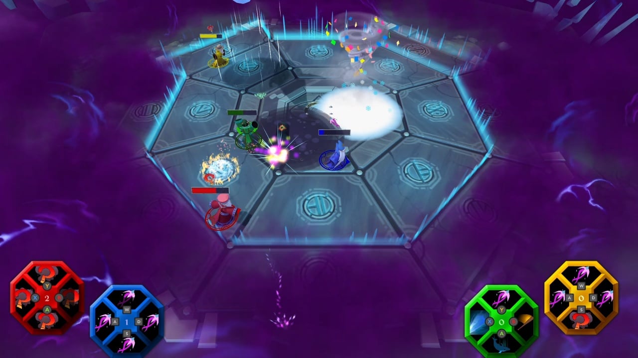 Кастуйте магию, призывая китов, бросая волейбольные мячи, цыплят и фаерболы. С каждой секундой пространство для битвы уменьшается, что требует от вас быстрых решений и мощных атак. Толкайтесь, взрывайте и пытайтесь перехитрить оппонентов. Dumb As Wizards можно играть через интернет или по локальной сети, собравшись на диване.