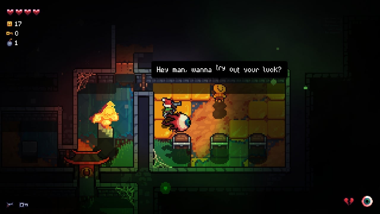Во время прохождения вы найдете 14 уникальных персонажей, ждущих вашего спасения. Ищите 28 шляп, которые предоставляют пассивные перки, значительно помогающие в битвах. Персонажа можно прокачивать через три ветки классов: стрелка, танка и мага. Можно комбинировать умения, создавая универсального бойца. Есть Зал Достижений, где фиксируются все ваши подвиги. Их можно делиться с друзьями. Кроме основной кампании, доступен режим Вегетарианца.