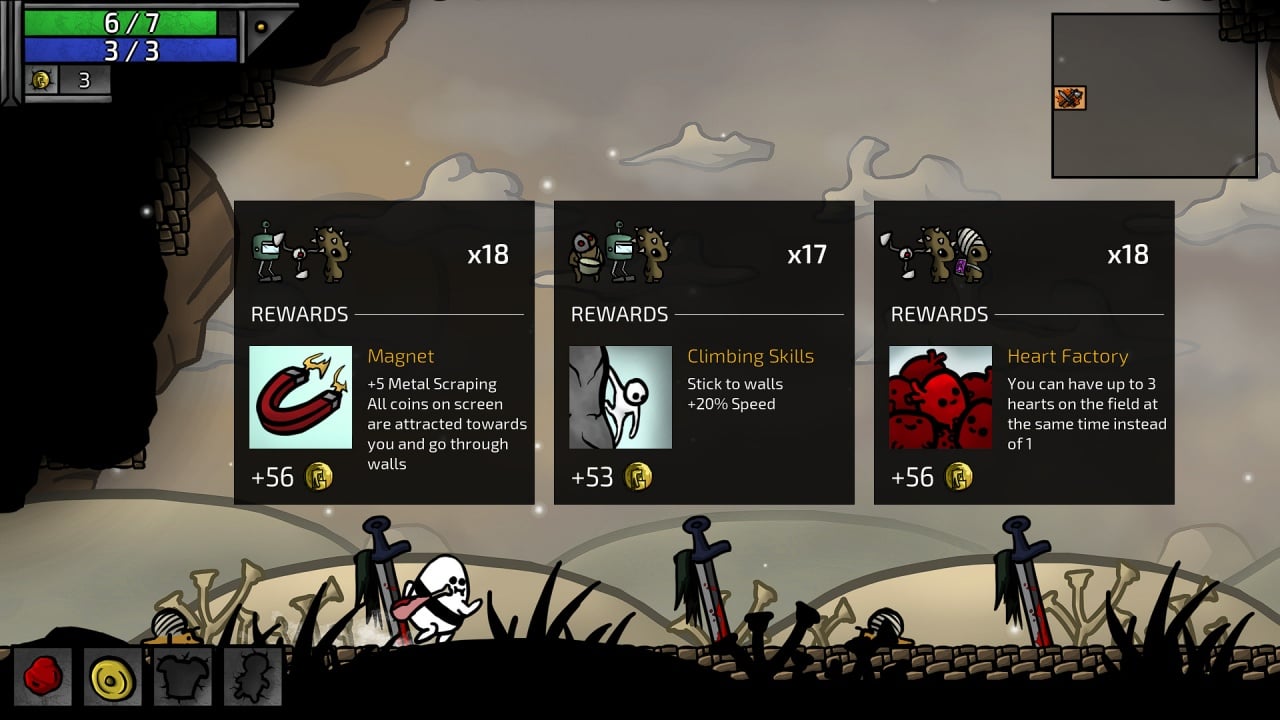Бойцы способны бегать, прыгать, делать рывки и атаковать как в ближнем, так и в дальнем бою. Уничтожая врагов, они получают монеты и иногда лут. На золото можно приобретать предметы, которые дают пассивные способности или влияют на игровые механики. Некоторые вещи снижают характеристики воинов, но взамен предоставляют другие бонусы. В тайтле насчитывается 300 айтемов, 50 типов недругов и 10 разновидностей главарей.