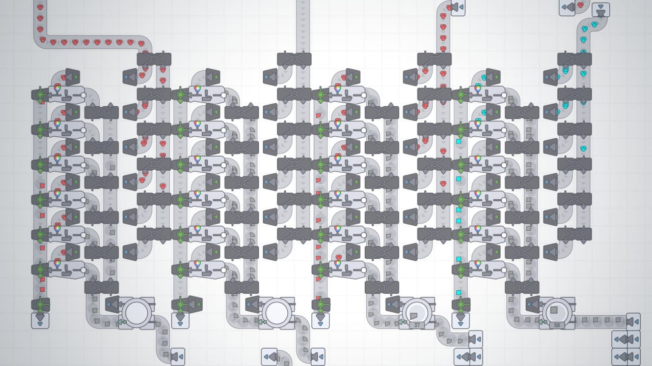 Геймплей shapez.io напоминает Factorio, но с упрощенным процессом. Графика минималистична, а акцент сделан на создание производственных цепочек. Здесь нет отвлекающих факторов, таких как электричество, ресурсы и враги.